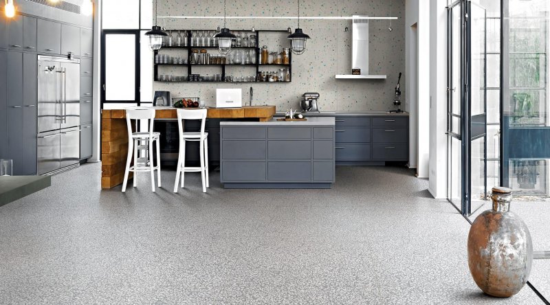 Бетон – практичный и универсальный материал с харизматичной фактурой, придает помещению индустриальный облик. Для защиты от влажности пористую бетонную поверхность герметизируют с помощью химической обработки, а полировка позволяет получить очень гладкую структуру.