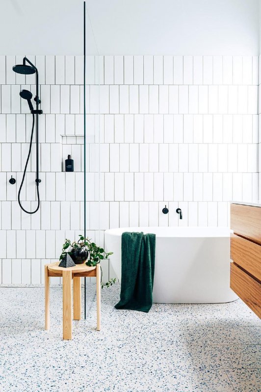 Полупрозрачная перегородка с каркасом в стиле арт-деко и встроенным держателем полотенец станет привлекательным акцентом.