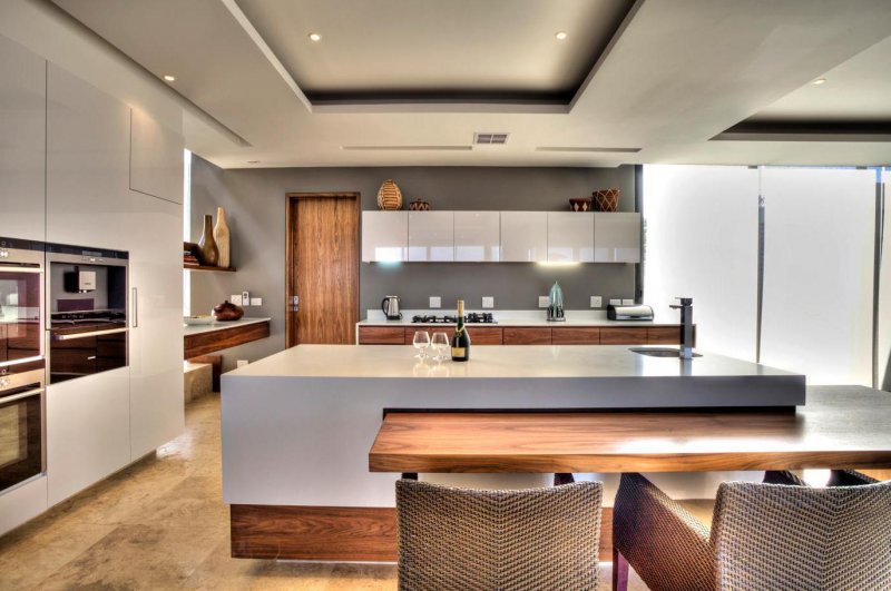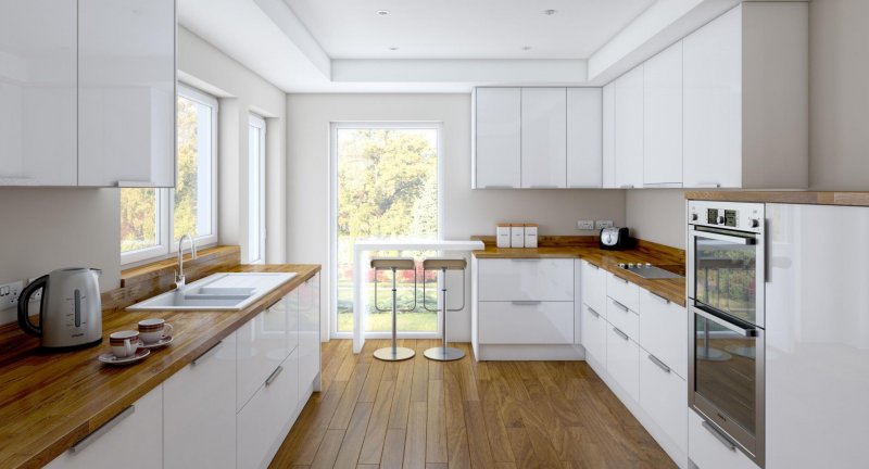 Еще один тренд 2019 года в дизайне кухни – сочетание белого цвета с теплыми оттенками древесины. Белые оттенки делают помещение более светлым, ярким и позволяют другим элементам отделки выйти на передний план. А дерево вносит в интерьер тепло и красивую текстуру, компенсируя прохладный эффект от фона. Вместе эти компоненты создают сдержанный привлекательный контраст.