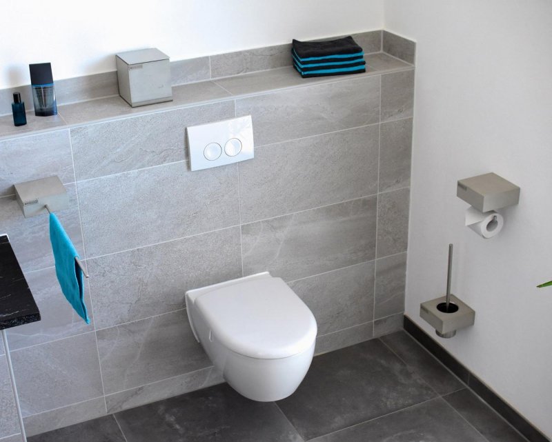 Еще одна модная тенденция – металлические модульные стеллажи, полотенцесушители, краны в промышленном стиле. Это, конечно, подходящая тема для мужского санузла.