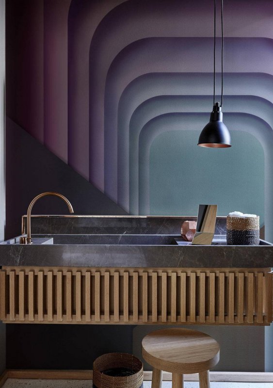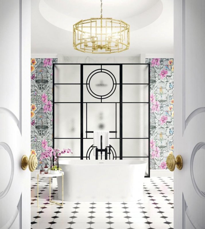 В дизайне ванной сезона 2019 присутствуют эффектные обои. Итальянская команда Wall&Deco разработали водонепроницаемую систему грунтовки и защитную отделку для восхитительных декоративных обоев.