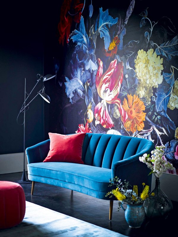 Интерьеры 2019 года предлагают сосредоточить внимание на оформлении стен, обратиться к синему цвету и добавить в обстановку мягкий текстиль.