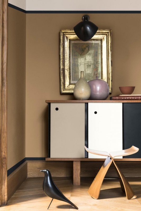Это теплый карамельный оттенок, который может принимать древесный, песчаный, янтарный окрас. Он уютный и успокаивающий, стимулирующий и энергичный – в зависимости от освещения и соседней палитры. Богатые карамельные тона делают комнату визуально теплее, поэтому хорошо подходят для создания традиционного стиля. А в сочетании с белой отделкой или белой мебелью приобретают более современное звучание.