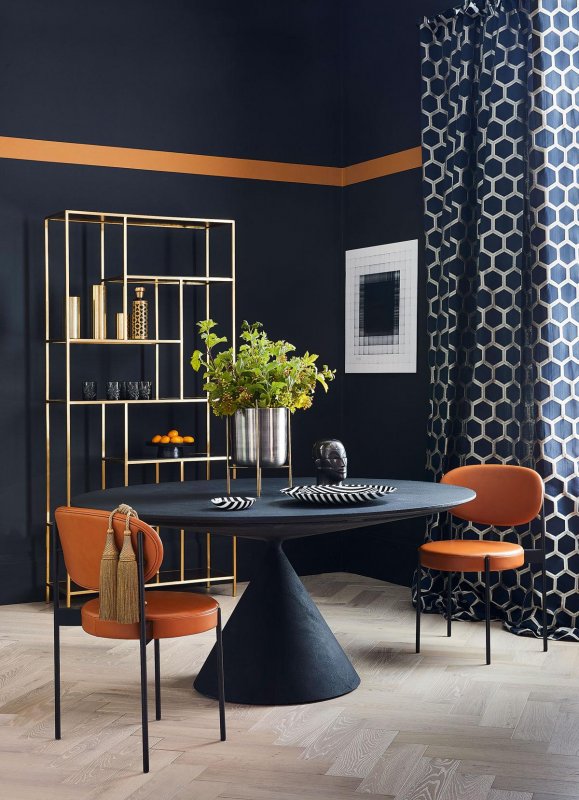 Глубокий синий цвет притягивает внимание своей насыщенностью, можно сказать, драматизмом. Вопреки традиционным представлениям о том, что темные оттенки зрительно сужают пространство, дизайнеры советуют использовать их не только на просторных кухнях, но и в маленьких помещениях и местах, где мало или совсем нет естественного освещения. В таких случаях именно темный цвет будет отвлекать от планировочных недостатков, фокусируя взгляды только на себе.