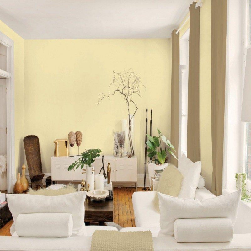 Желто-кремовый оттенок добавляет в комнату ощущение солнца. Превосходный цвет, чтобы увеличить помещение без окон (например, маленькую ванную) или поддержать световой эффект и без того яркого пространства. Хорошо подойдет для оформления детской, кухни, гостиной, спальни.