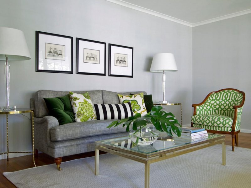 Включать в интерьер оттенки зеленого – тенденция 2018 года, которая продолжит быть актуальной. Серо-зеленый освежает и вдохновляет, на его фоне выгодно выделяется белая, голубая, бежевая мебель.