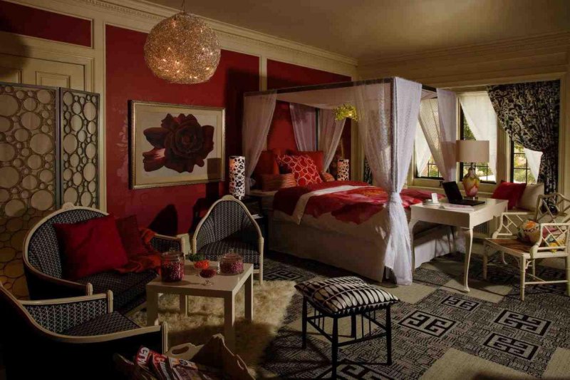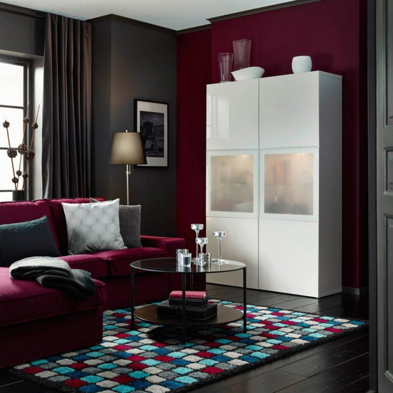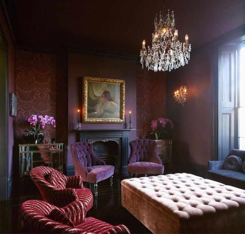 Среди модных цветов в интерьере 2019 года можно назвать также красно-фиолетовый спектр.