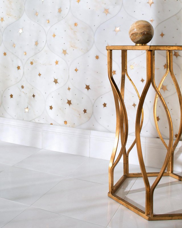 Тема космоса стремительно набирает популярность у производителей интерьерных аксессуаров и отделочных материалов. Светильники напоминают звездное скопление, темно-синий мрамор – ночное небо, обои реалистично изображают спиралевидную галактику. Характерные силуэты присутствуют в дизайне абажуров, фарфоровых тарелок, декоративных подушек.