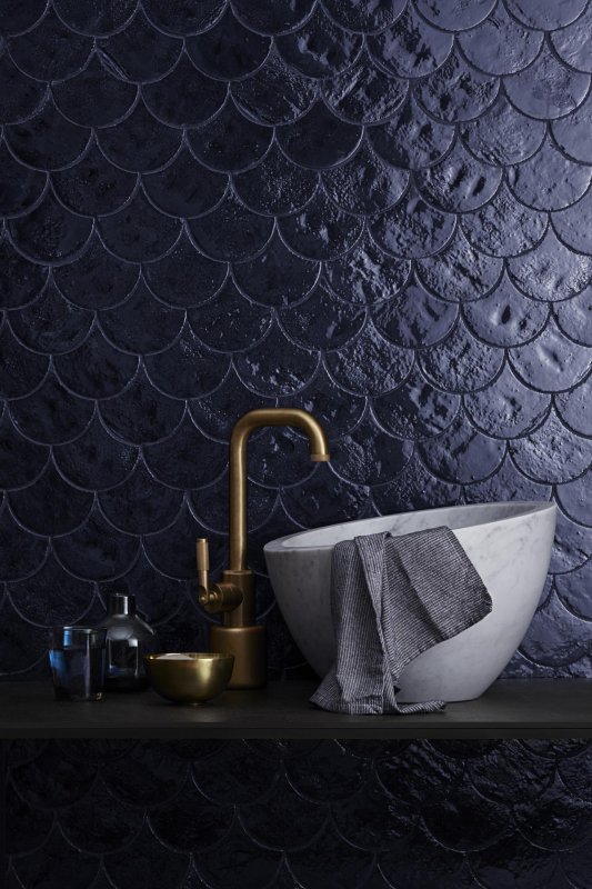 В будущем сезоне в моде плитка, имитирующая природные формы – от листьев до рыбных чешуек – в успокаивающих оттенках мяты или пятнистого серого цвета.