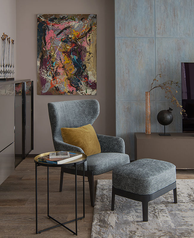 Заказчик этого интерьера тщательно подошел к выбору бюро, которому предстояло оформить пространство. В результате закрытого конкурса среди нескольких архитектурных и дизайнерских мастерских Санкт-Петербурга победителем стала студия братьев Жилиных.