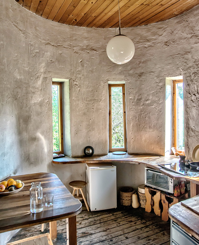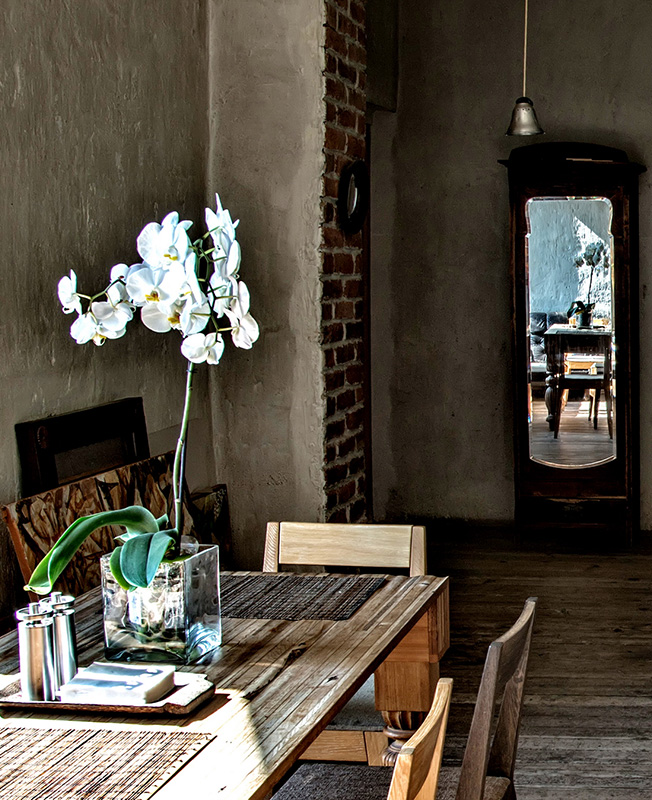 Постройка вызывает ассоциации и со средневековыми замками, и с залитыми солнцем тосканскими виллами, существуя в тесной связи с окружающим ландшафтом. «Современная архитектура — это уже не только архитектура фасада, а, скорее, движение вокруг», — говорит архитектор. В доме несколько входов — центральный и через кухню. Вторым пользуются в теплое время года, когда обедают в саду.