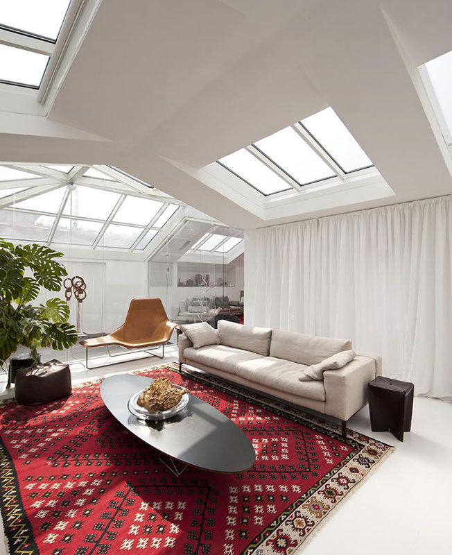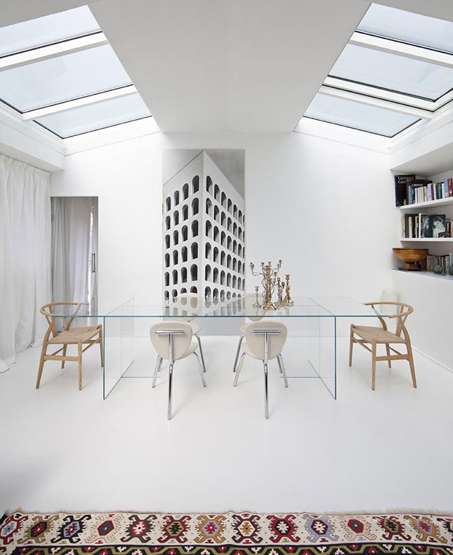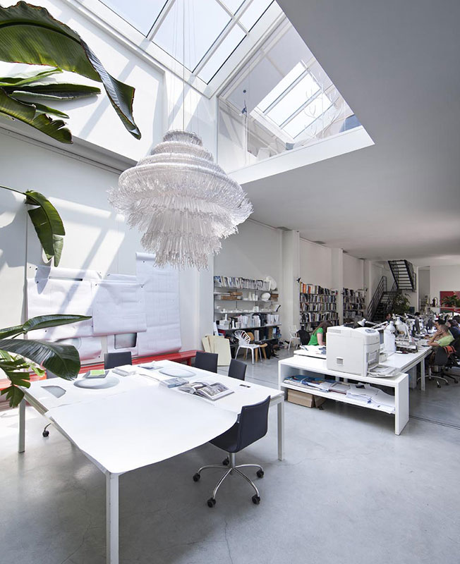 Свой миланский дом супруги называют «креативной фабрикой»: тут же располагается их офис. Они облюбовали лофт 1950-х в районе Навильи: два уровня, 240 кв. метров. «Мы сохранили открытую планировку, но расширили окна: чтобы собирать нашу команду из 15 архитекторов, нужна большая светлая мастерская. Наверху шесть жилых комнат. Повсюду преобладает белый цвет, и на его фоне расставлены красные акценты — это единственный декоративный прием. Предметов мало: есть классика XX века, этнические штуки, привезенные из путешествий, много нашего собственного дизайна. Все просто». Паломба последовательны: как проектируют, так и живут.