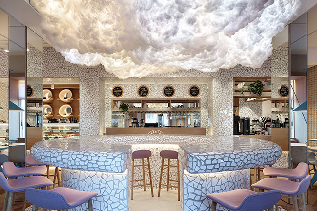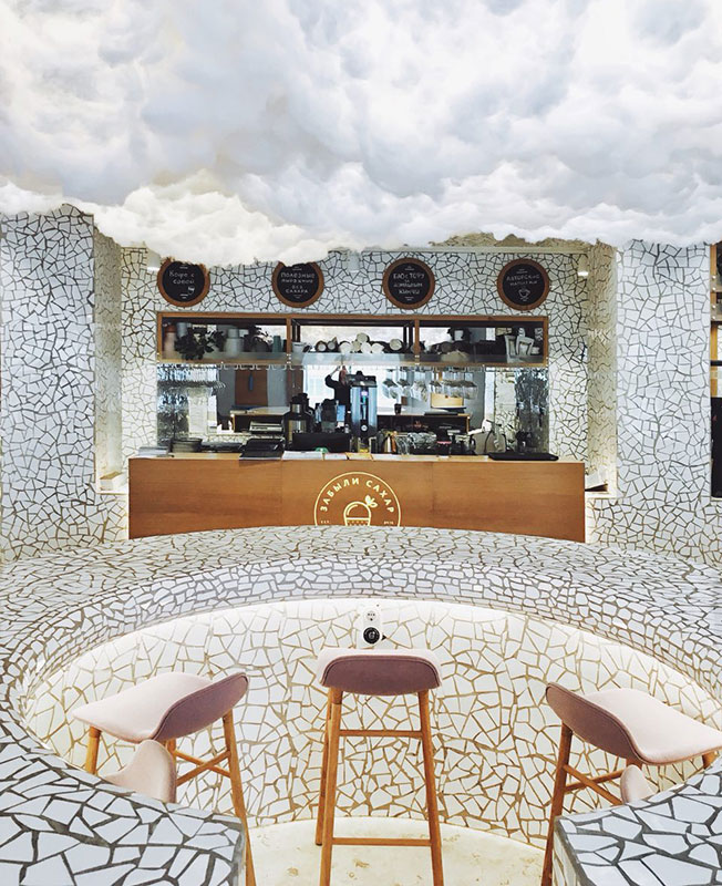 Над барным столом находится главный элемент интерьера — белоснежное облако-светильник. «Облако олицетворяет легкость и воздушность как и сама концепция кафе, где все десерты без сахара и из натуральных ингредиентов. Благодаря такому решению, «Забыли Сахар» стало интересным местом для множества посетителей, семей с детьми, блогеров».