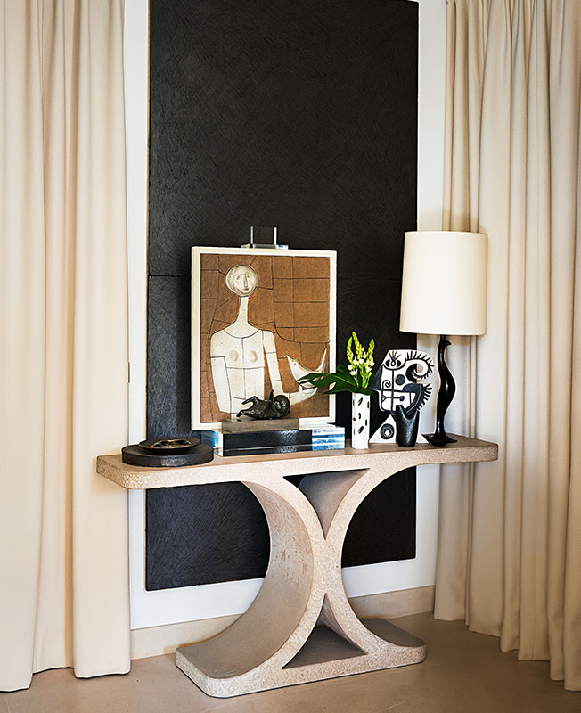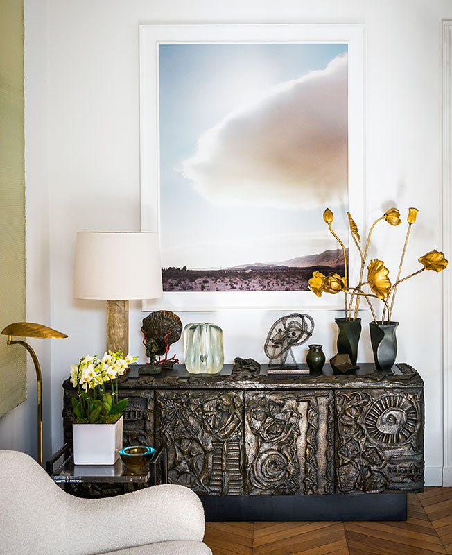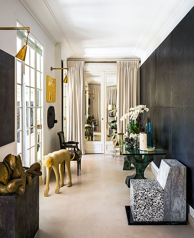 Артистичный дом — итог очень необычной профессиональной карьеры. Топ-декоратор и галерист Шахан Минассян родился в Бейруте, в 1976 году эмигрировал с родителями из Ливана во Францию, а через два десятка лет завоевал Европу и Америку. Минассян изучал архитектуру, работал у Ральфа Лорена. В 1993 году владелица ресторана на Вест-авеню в Майами увидела его проект, опубликованный в журнале, после чего пригласила обновить интерьер своего заведения. Так появился Starfish — культовое место 1990-х, а Минассяну начали поступать заказы из Лос-Анджелеса и Нью-Йорка. Майами вдохновил его привезти малоизвестных американских дизайнеров в Европу. Именно Шахан открыл Старому Свету Пола Эванса, Карла Cпрингера, Эдварда Уормли. Теперь все они представлены в его парижской галерее в Сен-Жермене на рю де Лилль.