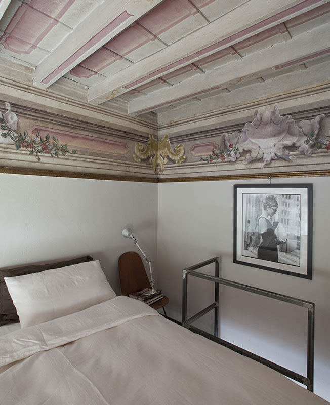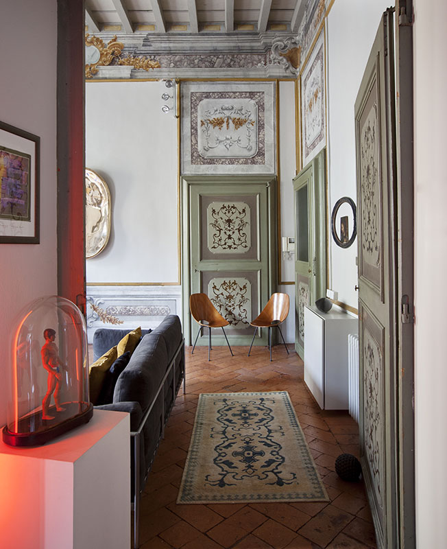 Здание, в котором Антонио и Кристиан приобрели жилье, также достойно восхищения и пиетета. Оно было построено в XIII веке, спустя три столетия расширено и в 1723 году снова обновлено. Фризы отмечены гербом семейства Угони-Пьяццони, которые владели домом до 1800 года. Именно к тому периоду относятся прекрасно сохранившиеся росписи на стенах и потолках. Как и другие свои дома, этот Антонио и Кристиан обставили и оформили сами, без чьей-либо помощи. Они увлечены декораторским искусством. И не исключают, что эта страсть может стать профессией.