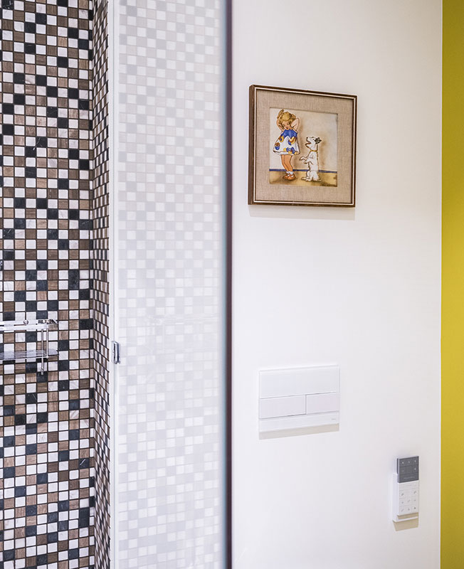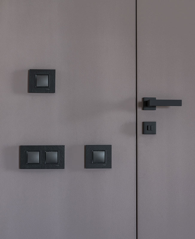Дизайнер нашла для проекта сложные, красивые, при этом сдержанные оттенки. Они стали удачной альтернативой бежевому тону, о котором изначально мечтали заказчики. Электроустановочные изделия Schneider.