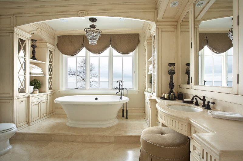 Санузел, выполненный в темных тонах, выглядит предпочтительнее, с точки зрения стиля. Сначала нужно взвесить все «за» и «против». Маленькое помещение оформляют в светлой гамме. Подойдут пастельные и карамельные оттенки. Вставки лучше делать контрастными, чтобы создавать переходы от светлого к темному и наоборот. Обычный белый умывальник — не лучшее решение. Предпочтительно, чтобы раковина была прямоугольной и цветной, контрастировала с окружающей обстановкой. Не стоит облицовывать стены однотонной плиткой (за исключением черной). С вешалками и тумбочками можно экспериментировать. Внешний вид ванны играет решающую роль в восприятии интерьера помещения. Сама емкость может иметь форму ракушки, туфельки, цветка или лепестка. Чем больше креативности, тем лучше. Завершают декорирование добавлением нетипичного элемента — стула, цветных свечей или портрета.