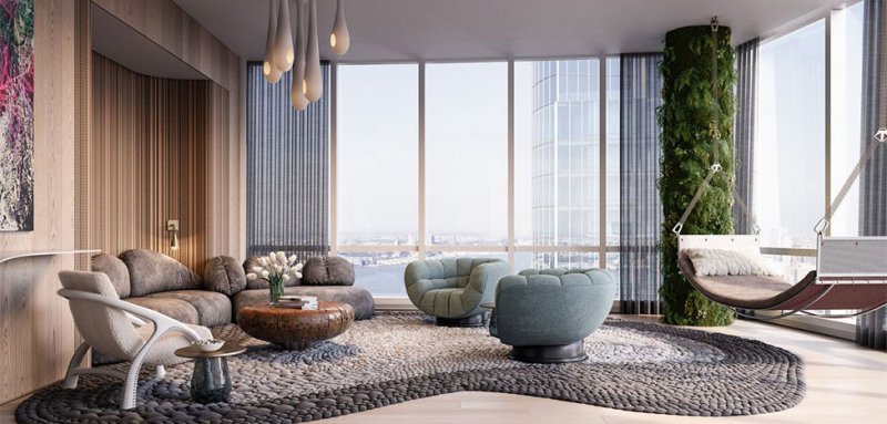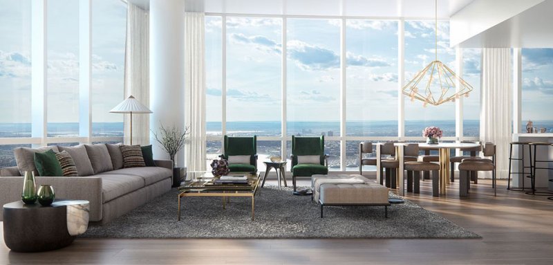 В VR-турах, которые подготовили девелоперы, предлагается заглянуть в пять разных модельных резиденций в здании: в квартиры на три и четыре спальни на 39-м, 69-м и 73-х этажах; в четырехэтажный пентхаус на 88-м и в еще один пентхаус с четырьмя спальнями на 83-м этаже.
