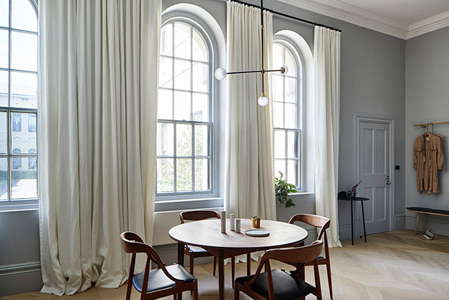 Дизайнер Сара Вольфендей отдает предпочтение европейскому дизайну: ценит его скандинавский, бельгийский и французский варианты. За годы она собрала оригинальные датские предметы мебели Mid-century modern, в том числе раскладной обеденный стол из тика 1960-х годов, за котором могут свободно разместиться восемь человек.