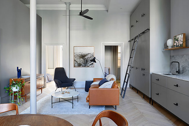 Дизайнер Сара Волфендейл (Sarah Wolfendale) и ее муж Томми искали недорогое жилье в Мельбурне, в таком месте, чтобы они могли спокойно ездить на велосипеде и не быть связанными с парковкой. Приоритетом было центральное местоположение. Когда они увидели эту квартиру площадью 90 кв. метров, то сразу оценили ее потенциал.