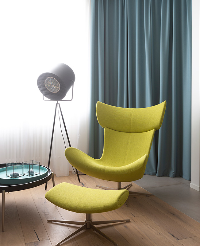Нам нужна была современная мебель с лаконичным простым дизайном, исходили из бюджета. Основную мягкую мебель выбрали из BoConcept, детскую комплектовали Ikea, корпусную мебель заказывали у московских мебельщиков. Основным ярким акцентом гостиной являются кресла BoConcept — модели Imola и Boston.