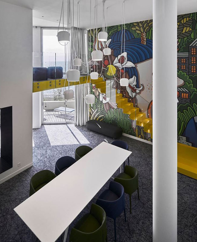 Отображение города, полного энергии и противоречий, как сама жизнь Тереза Сапей поставила во главу угла. Концепция отеля заключается в двойственности. Здесь есть необычный тунель, сочетание старинных рекламных щитов начала XX века с городскими граффити, нарисованными местными художниками, провокационый выбор цвета — Сапей сталкивает желтый, оранжевый, красный и синий. Тунель-бар на первом этаже расположен между двумя водными бассейнами: с пресной и соленой водой, символизируя соединение суши и моря.