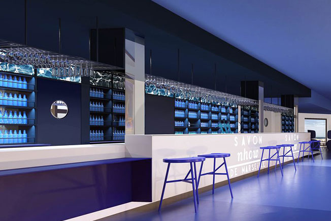 На третьем этаже расположен Sky Bar, в нем висит оригинальная люстра из 4000 стальных сардин, созданная английским художником Фрэнсисом Бромли. Ресторан под управлением местного шефа Бенджамина Матье и бар на крыше с видом на Средиземное море дополняют общую картину, предоставляя возможность насладиться непринужденным приморским шиком, простым и неформальным.
