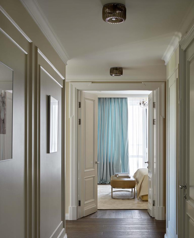 Классическая раскладка гипсовых молдингов на стенах в сочетании с современными предметами мебели и искусства и добавлением винтажных предметов дает ощущение интерьера вне времени.