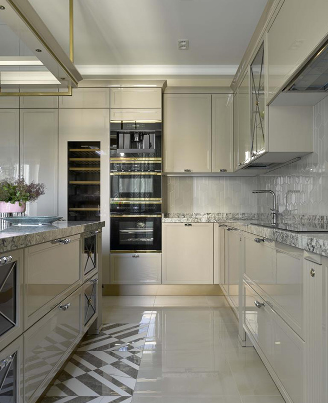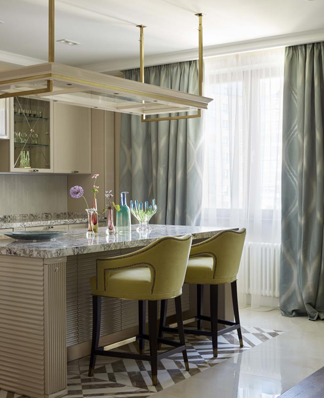 Кухня Aster Cucine демонстрирует классический декор в современной облегченной версии. Стулья Brabbu.