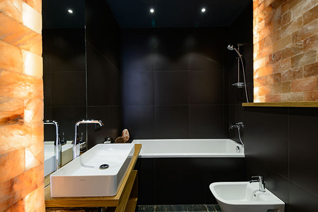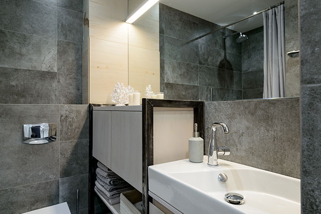 Бюджет был ограниченным, поэтому выбор материалов — довольно узок. В целях практичности и экономии мы выбрали ПВХ-плитку и керамогранит Italon, совмещая его с белой покраской. Зону оконного «портала» сварили из металлической трубы, обшили фанерой и ламелями натурального дуба. Так же на заказ был выполнен светильник над столом — компанией Bearmade. Даже мебель в ванных комнатах по индивидуальным размерам и с тем же каркасом из сварных труб.