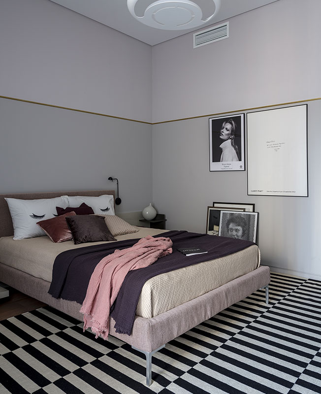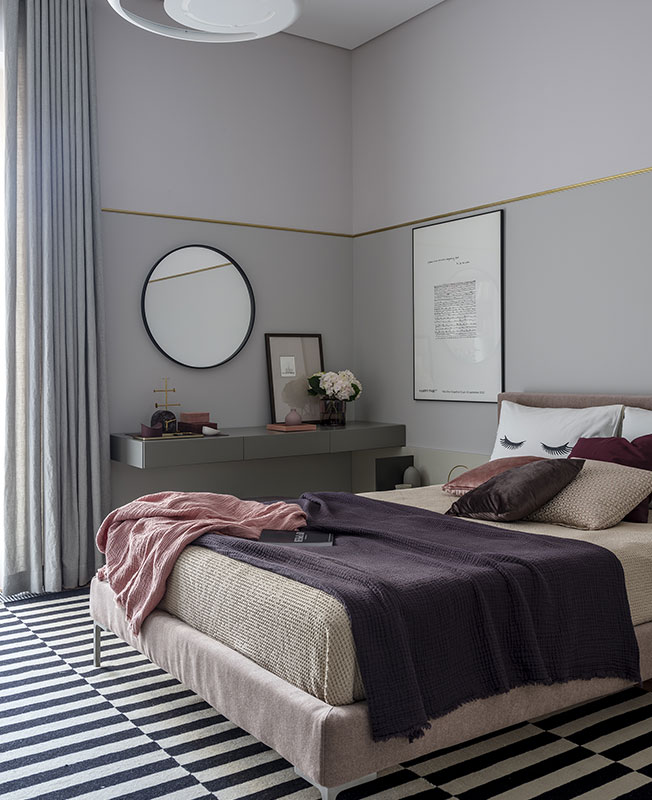 Комната дочери оформлена в серо-розовой гамме. Кровать, Twils. Туалетный столик и прикроватные тумбы, Presotto.