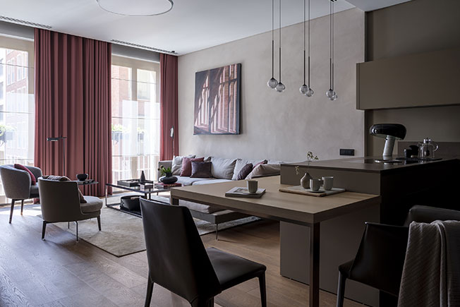 В московской квартире нужно было обеспечить тот комфорт, к которому они привыкли: достаточное количество санузлов и гардеробных, выкроить хозяйственную комнату, отдельные комнаты для детей, места для работы и занятий, а также гостиную, в которой все вместе могли бы собираться, разговаривать и смотреть интересные фильмы.