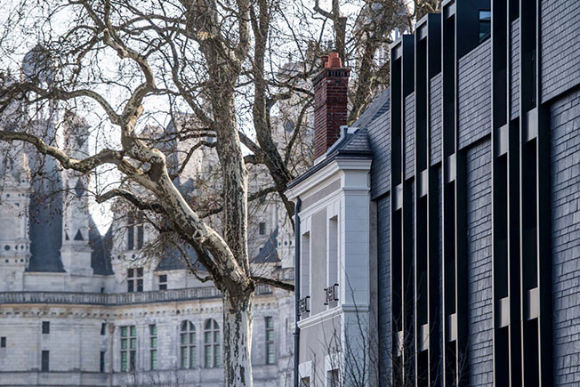 Отель Relais de Chambord был открыт на месте скромной гостиницы, существовавшей напротив королевских стен с 1850 года. Постройка сохранила оригинальные элементы — камины, деревянные мансардные окна, каменные карнизы. Северный фасад одет в сланец и пронизан длинными вертикальными окнами.