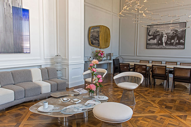 Кресла Уоррена Платнера, стол, диз. Винченцо де Котис, светильник, диз. Studio Drift.