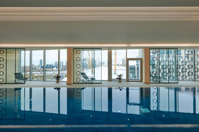 Спа находится на крыше одного из пяти жилых зданий Upper Riverside, в котором также находятся мансарды, спроектированные студией Тома Диксона. Спа-центр включает в себя бассейн, парную, два современных тренажерных зала и обширную террасу с видом на Лондон.