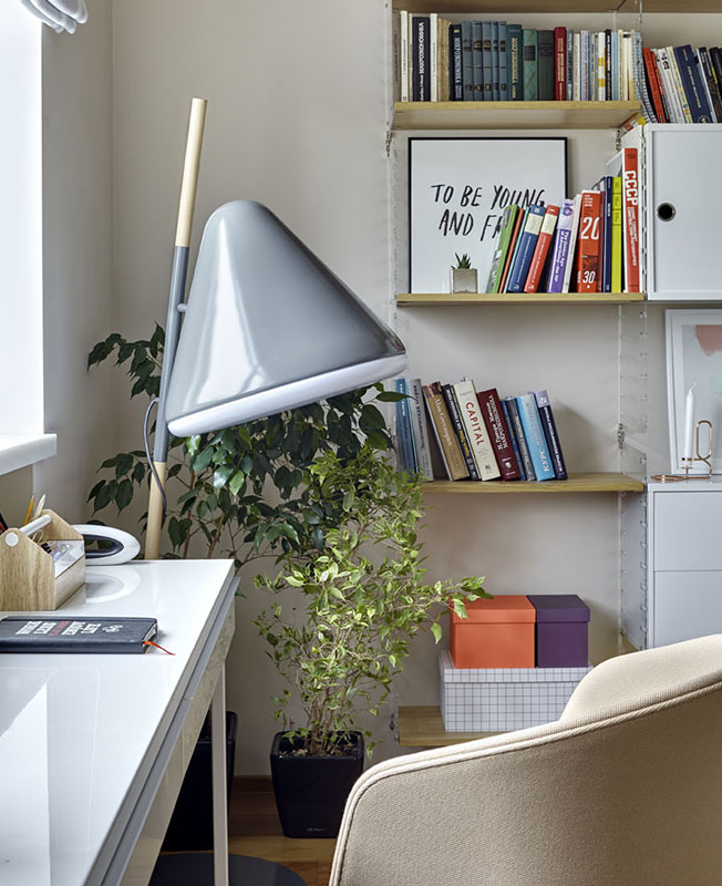 Заказчики любят скандинавский дизайн — архитекторы собрали настоящую коллекцию отменных предметов. Задействованы датские бренды Muuto, Gubi, Hay, &tradition, Bolia, шведские String, One Nordic, Design House Stockholm, Mass Production. Географическое происхождение не было самоцелью — подошли и марки из других стран, работающие в схожей стилистике, такие как французская La Chance, испанская LZF, британская Established & Sons. Крупные элементы, обеденную группу и кровать, выбрали от немецкой компании Zeitraum.