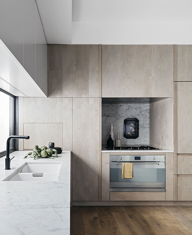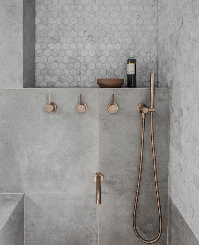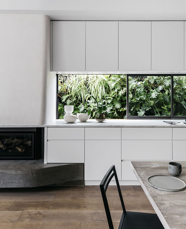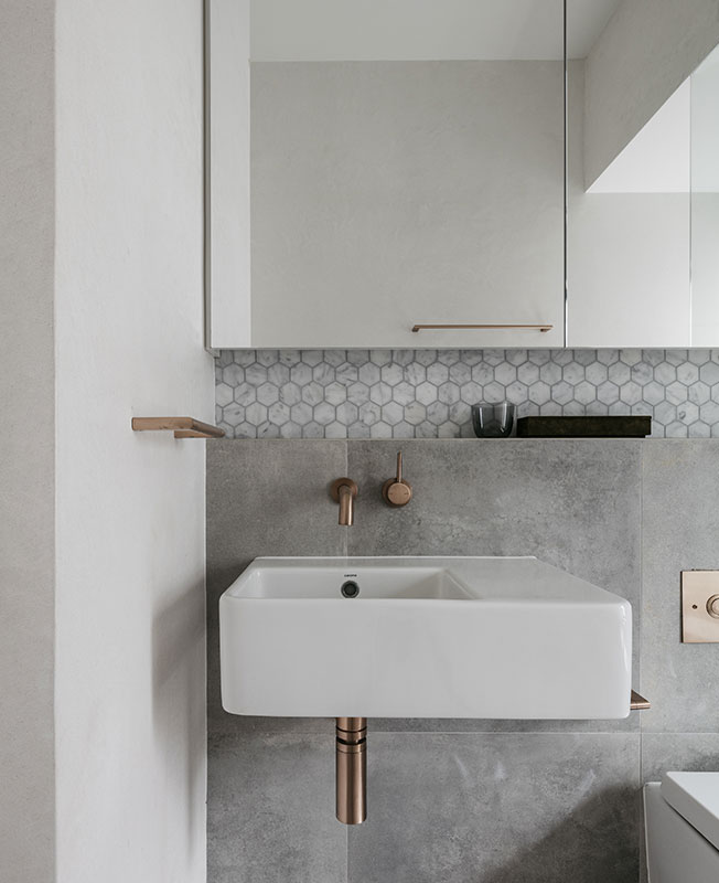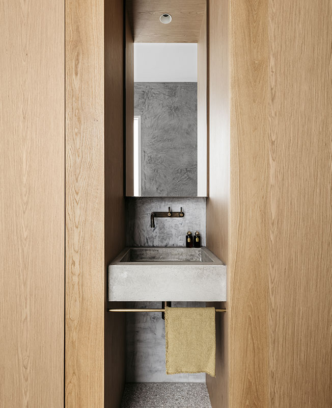 Многие детали были изготовлены вручную: например лепной портал для камина, бетонные раковины и деревянные шкафы.