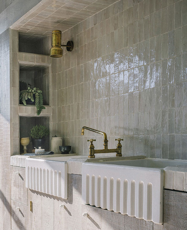 Каждый архитектурный элемент или деталь были спроектированы Chan & Eayrs специально для этого интерьера, многое навеяно личными впечатлениями. Плитка зулляйдж на полу напоминает о Марокко, где пара поженилась. Геометрия пространства отсылает к дворикам китайского Сучжоу, куда архитекторы недавно съездили с дочерью.