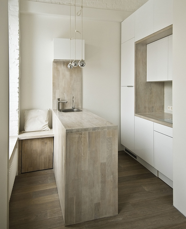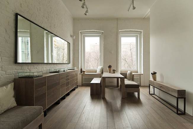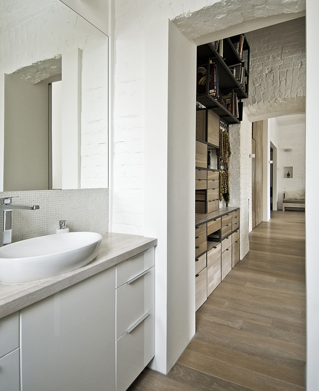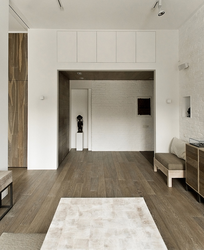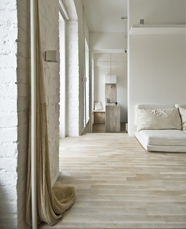 Светлане нравятся чистые, пустые поверхности. Поэтому фоном для интерьера стали отреставрированная кирпичная кладка 1915 года и выбеленный дуб. Вся мебель — максимально простых, лаконичных форм — сделана по эскизам хозяйки.