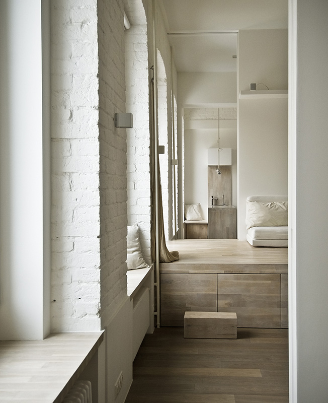 Этот метод открывания Светлана «подсмотрела» в дорогих парижских бутиках — там он используется для витрин. Подиум не только практичен — с его помощью архитектор воплотила мечту об окнах в пол, подняв пол до уровня подоконника.
