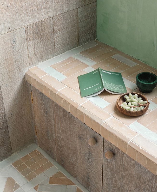 Каждый архитектурный элемент или деталь были спроектированы Chan & Eayrs специально для этого интерьера, многое навеяно личными впечатлениями. Плитка зулляйдж на полу напоминает о Марокко, где пара поженилась. Геометрия пространства отсылает к дворикам китайского Сучжоу, куда архитекторы недавно съездили с дочерью.