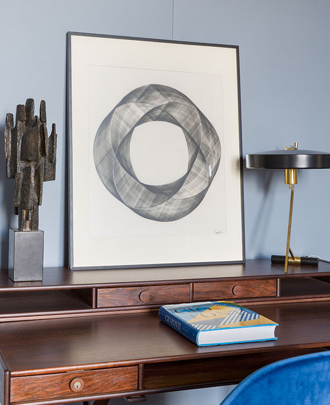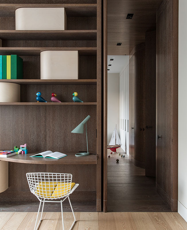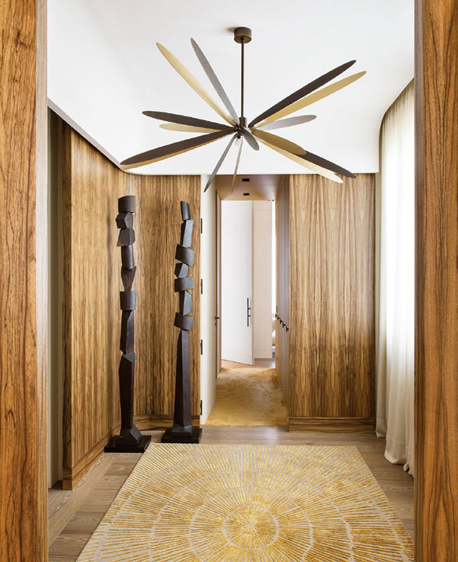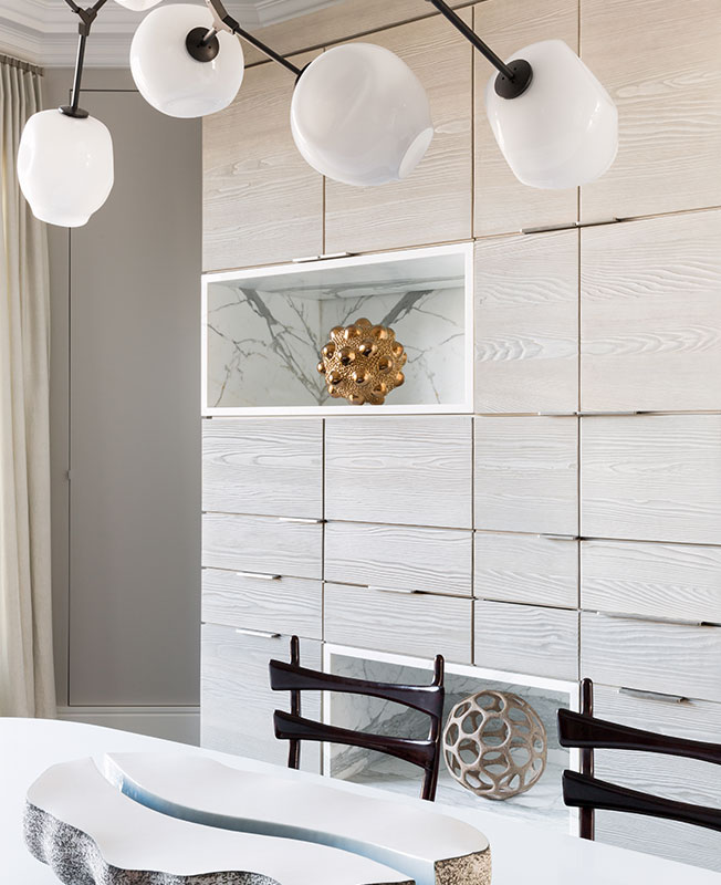 Дизайнер выкладывал гранит паркетной французской елочкой, искал африканскую лимбу для стен прихожей. Нарисовал эскизы почти всех шерстяных ковров, которые лежат на полу квартиры. Сделал так, что в одном помещении все металлические детали образуют аккорд, а аксессуары — вазы, мелкая скульптура — щеголяют разнообразием фактур.