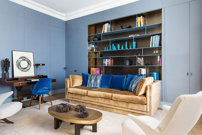 Дом построен в самом конце XIX века. В квартире последние годы располагалась частная контора. «Помещение досталось нам в плохом состоянии, единственное, что имело смысл сохранять, — камины». Хозяин предоставил Дамьену полную свободу действий, выразив лишь одно желание: чтобы интерьер был неповторимым. Он был тронут вниманием дизайнера к деталям.