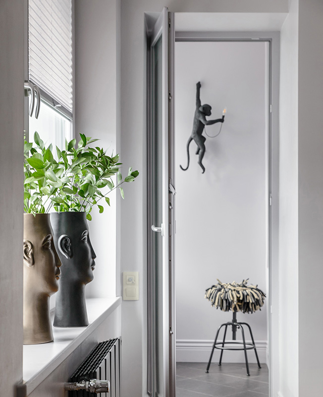 В проекте использовали предметы и материалы из коллекций таких брендов, как Seletti, Kartell, &tradition, Artemide, Calligaris, Marset, Little Greene, Kahrs, Ultrawood, Northern.