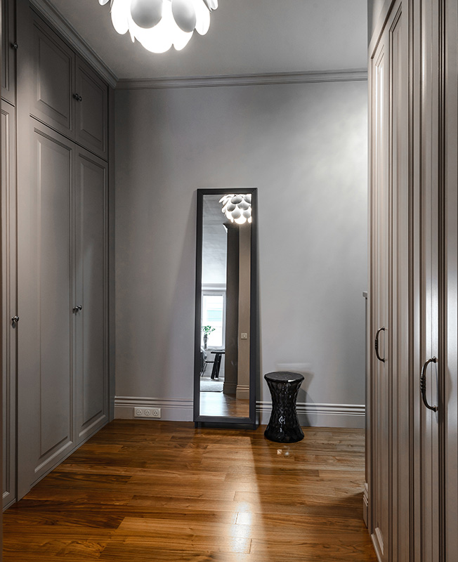 Если говорить о стилистическом решении, то хотелось создать пространство, напоминающее квартиры стран Бенилюкса. А по смыслу скорее холст или функциональный лаконичный трансформер, который будет видоизменяться в зависимости от характера жильцов и наполнения декором и арт-объектами. Этому способствует колористическое решение.