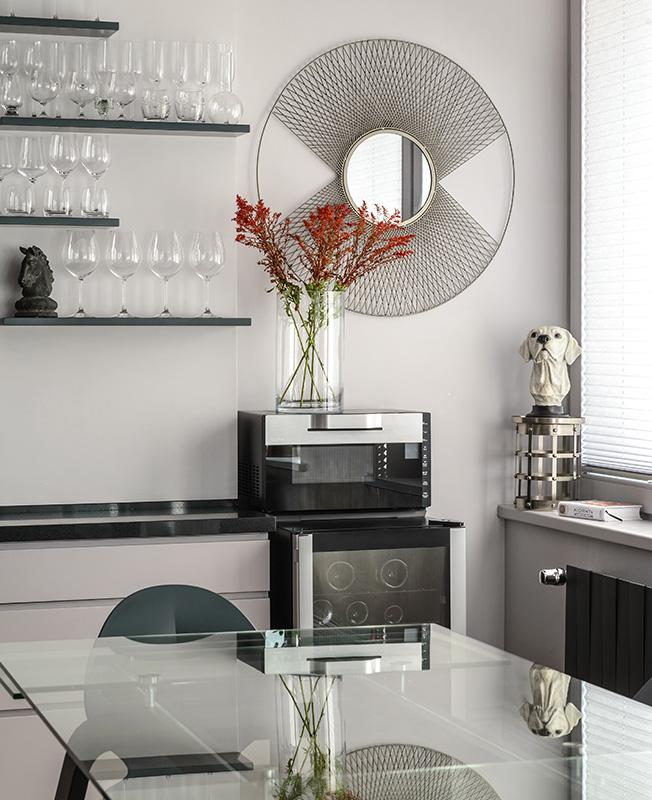 Квартира площадью 65 кв. метров предназначена для сдачи в аренду и создавалась для комфортного проживания одного человека или семейной пары без детей. «Учитывая расположение дома — а рядом множество офисных зданий с федеральными и иностранными компаниями, а также десятки различных ресторанов и кафе, — предполагалось, что арендатором будет человек, приехавший строить карьеру в длительную командировку», — комментирует Лана Харитонова.