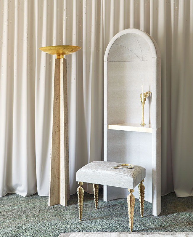 Декоратор применила и другие роскошные материалы: пергамен, шагреневую кожу, маркетри из кости, перламутра, древесины сикомора — подобные отделки несут в себе коды ар-деко. Стилистика 1930-х — та рамка, в которую Анн-Софи любит заключать свои работы.