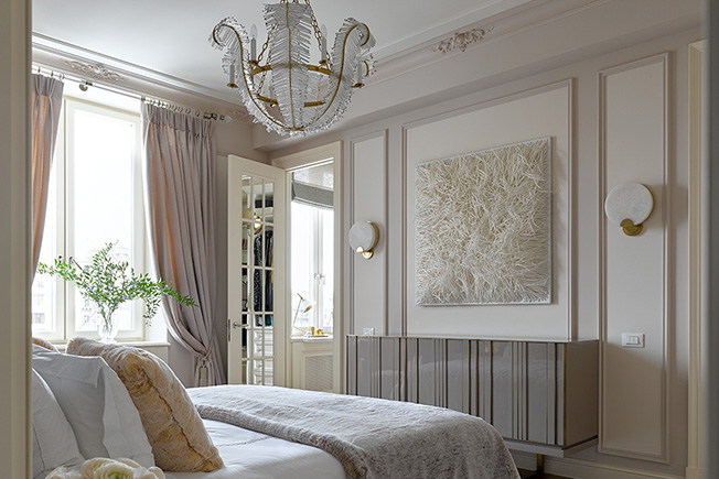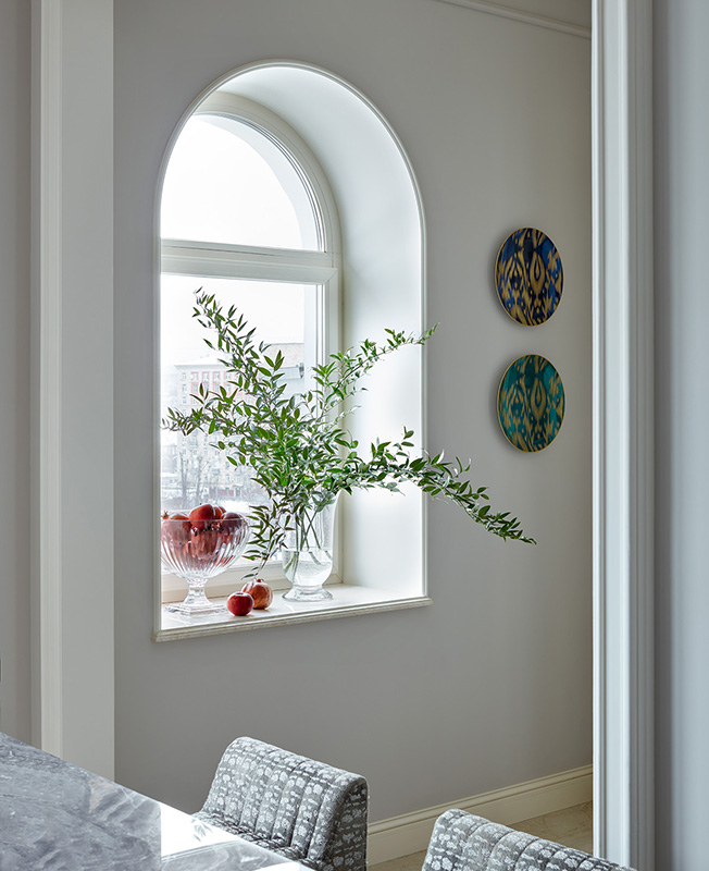 Предложенный Натальей и Дарьей вариант оказался компромиссным. Фон сделали нейтральным — светлые стены с классическими молдингами, дубовые полы, элементы из мрамора, текстиль в природной палитре. А индивидуальности пространству добавили за счет наполнения.