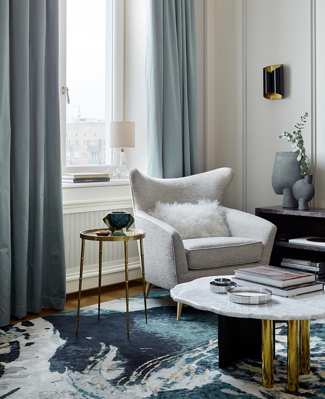 Соединили предметы современных брендов с винтажом и антиквартом, а также изделиями, созданными на заказ по эскизам дизайнеров. Вписали и арт-объекты из западных и российских галерей, и дорогие сердцу хозяев предметы, такие как кресло из карельской березы.