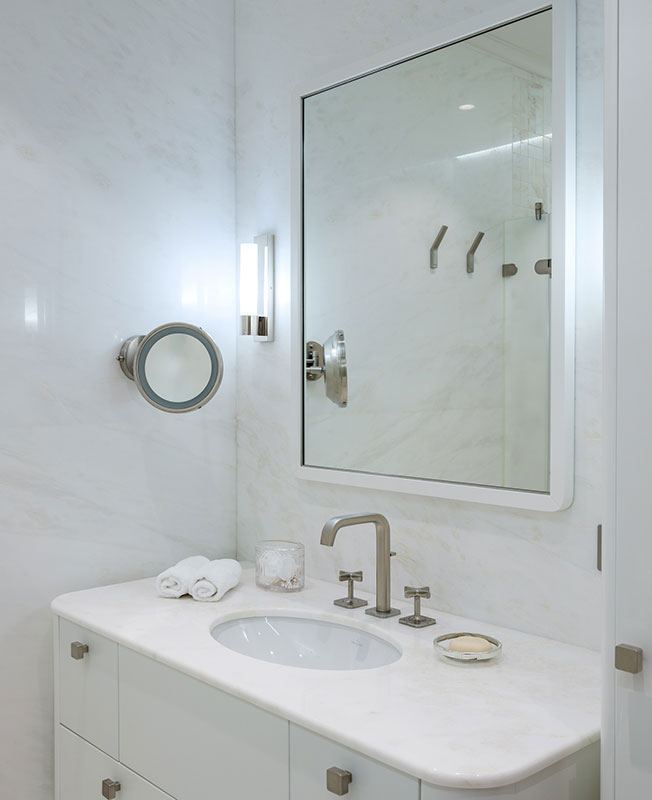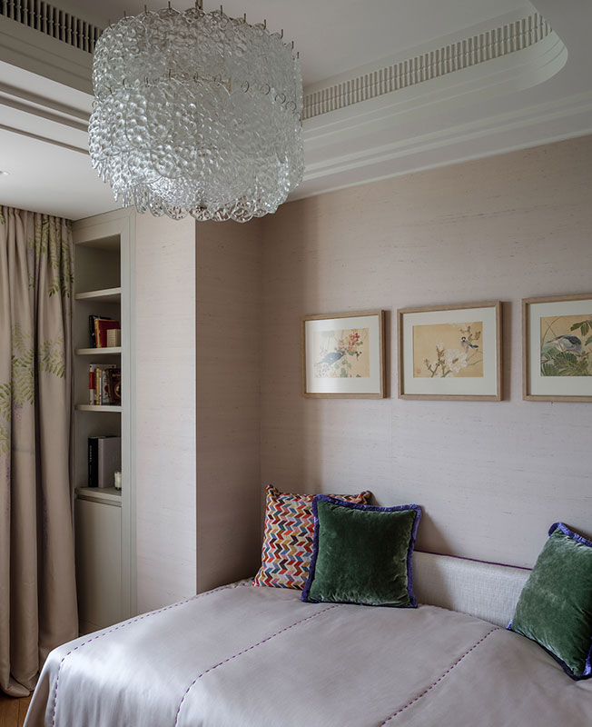 Каждый член семьи получил персональное пространство со всем необходимым функционалом, также была сделана звукоизоляция. Каждая комната выполнена в специально разработанном образе. Предметы искусства связаны с важными событиями и воспоминаниями родителей и детей. В спальнях предусмотрены скрытые системы хранения.